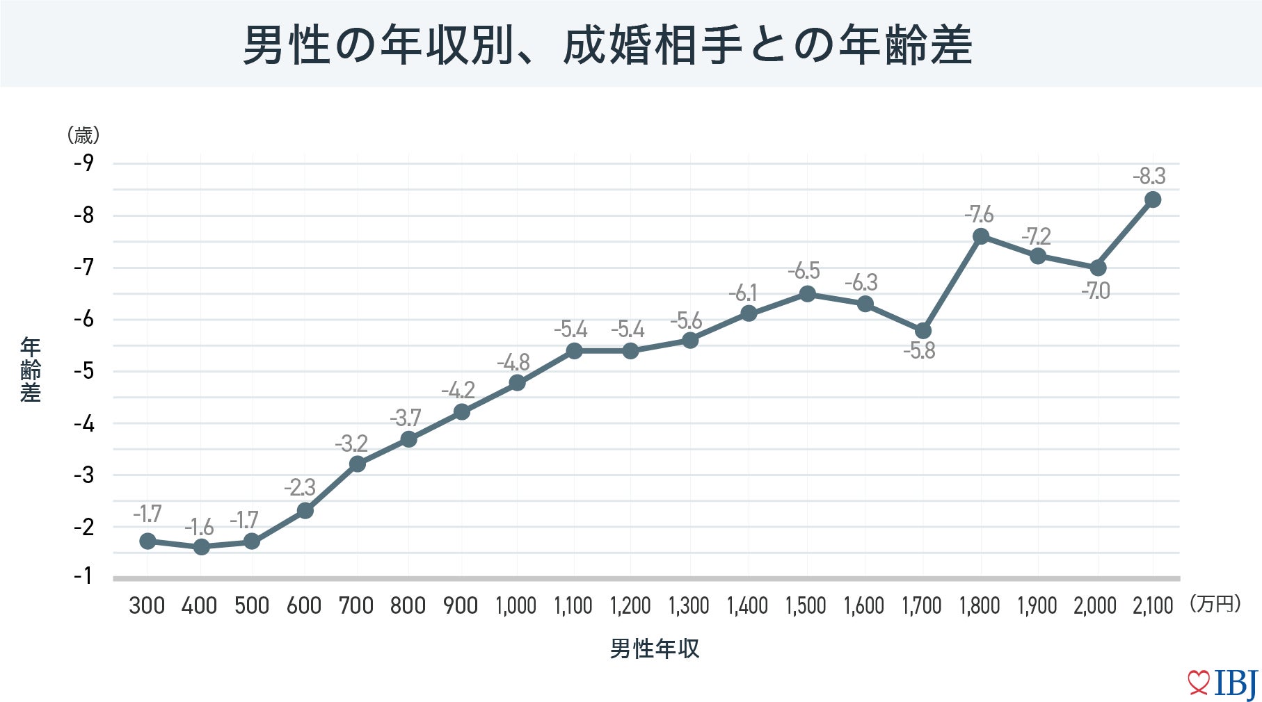 IBJの成婚白書でネット上で最も話題になったのが、「男性の年収別と成婚相手との年齢差」です。